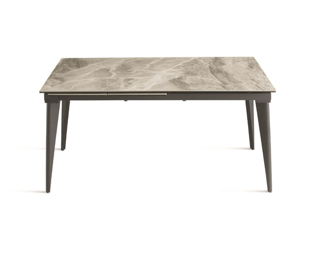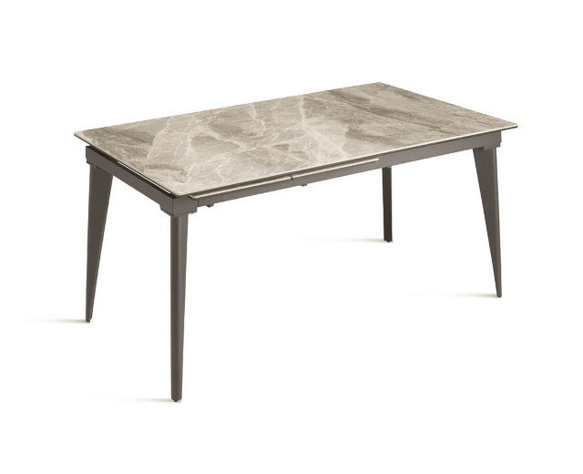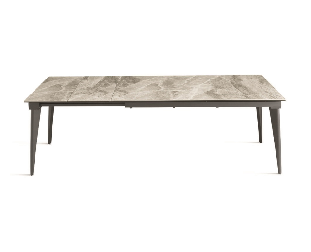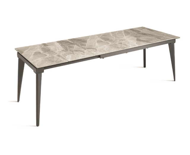 Realizzato con base in metallo verniciato e piano in grès porcellanato effetto marmo grigio, coniuga estetica e funzionalità in un’unica proposta raffinata. Grazie alle due allunghe laterali da 40 cm, il tavolo può estendersi facilmente fino a 240 cm, offrendo spazio aggiuntivo per accogliere comodamente da 8 a 10 persone. Ideale per cene in famiglia o momenti di convivialità, saprà sorprendere ospiti e completare armoniosamente qualsiasi ambiente.